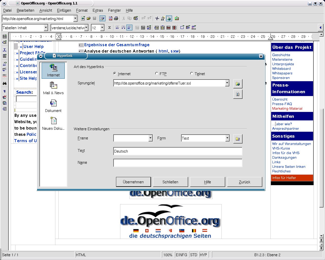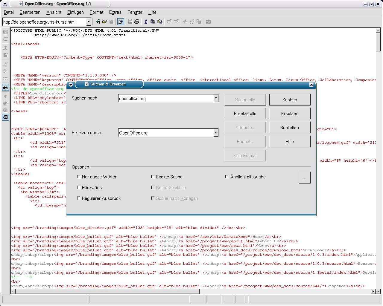 Screenshots - OpenOffice.org 1.1 - Html-Editor