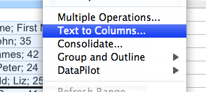 Transformation of CSV Data Inside Cells into Columns within CalcIf data imported or copied into a spreadsheet ends up in one column even though the information includes different data fields; the text-to-columns feature allows splitting up the fields into separate columns. |